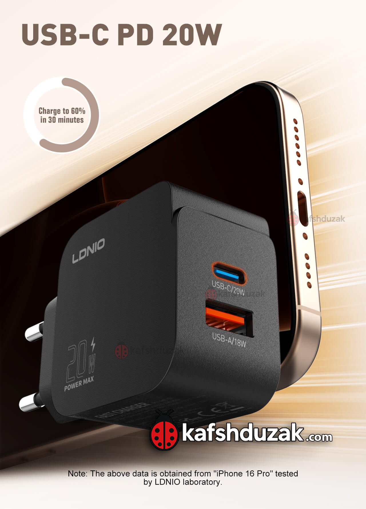 با شارژر 20 وات الدینیو Q1، سرعت و کارایی را تجربه کنید! جنس بدنه این شارژر ساخته شده از PC بسیار با کیفیت به همراه تکنولوژی ضد حریق می باشد. استفاده از تکنولوژی QC3.0 و PD 3A تضمین میکند که دستگاههای شما سریعتر از همیشه شارژ شوند. همراه با کابل تایپ سی، این محصول کاملترین انتخاب برای افرادی است که به دنبال ترکیبی از کیفیت و سرعت در شارژ هستند. همین حالا تهیه کنید و زمان را صرفهجویی کنید!